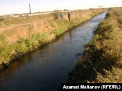Очистной канал близ Атырауского нефтеперерабатывающего завода, заполненный отходами производства. Атырау, 15 октября 2010 года.