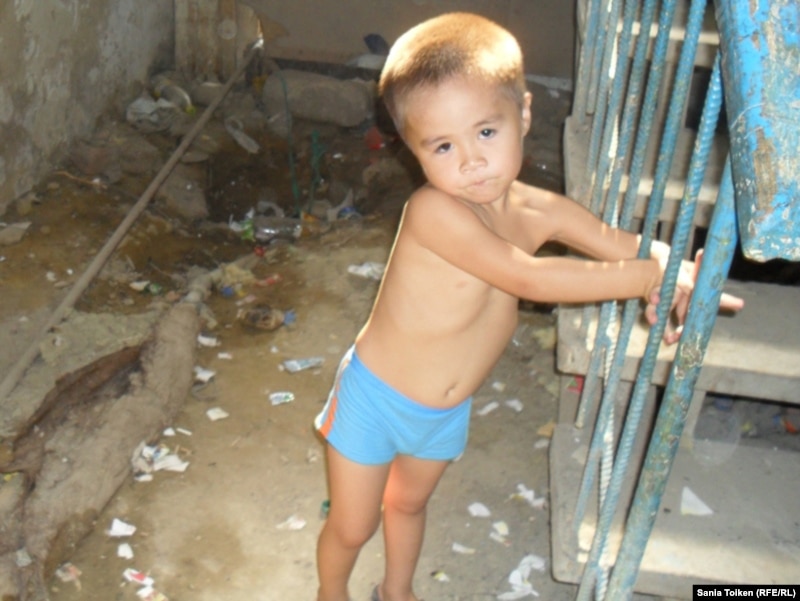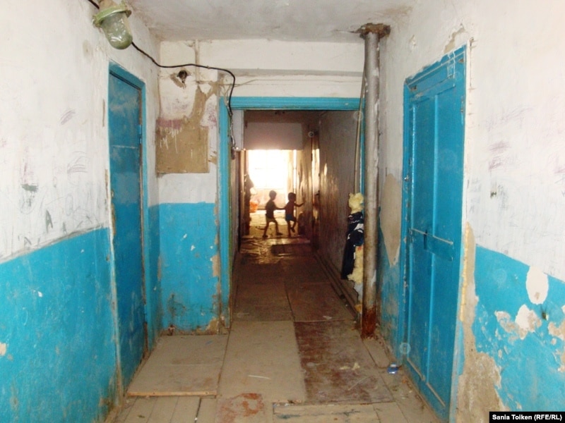 Кулян Сейтмуханова делит 34 квадратных метра в общежитии в поселке Геолог с дочерью, сыном, снохой и тремя внуками. Живут они на заработную плату дочери в 35 тысяч тенге (более 200 долларов). Но члены большой семьи жалуются в первую очередь не на безденежье, а на отсутствие нормальных условий в общежитии.