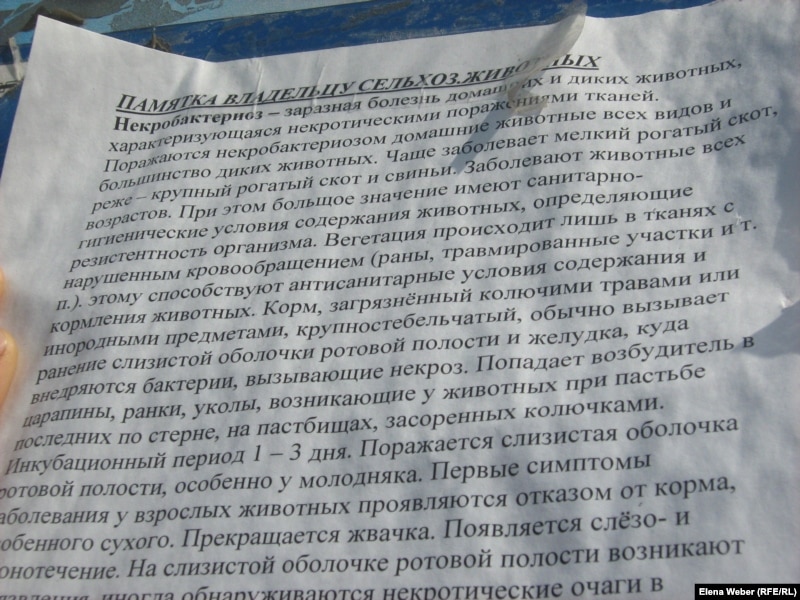 Памятка владельцам домашней скотины о некробактериозе. Карагандинская область, 29 июля 2010 года.