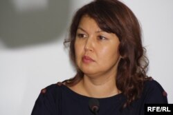 Джамиля Джакишева, супруга бывшего топ-менеджера "Казатомпрома" Мухтара Джакишева на пресс-конференции. Алматы, 23 ноября 2009 года.