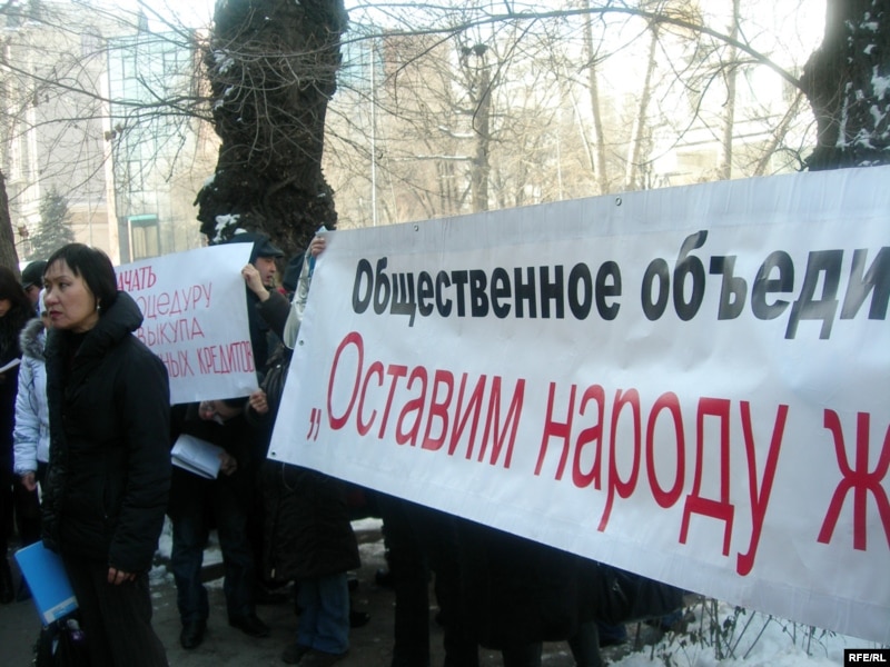Акция дольщиков, пострадавших от жилищного кризиса. Алматы, 11марта 2009 года.