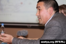 Амангельды Шорманбаев, юрист фонда "Хартия за права человека", участник круглого стола на тему "Роль СМИ и НПО в освещении и соблюдений прав избирателей в зонах вне общественного контроля". Алматы, 16 марта 2011 года.