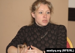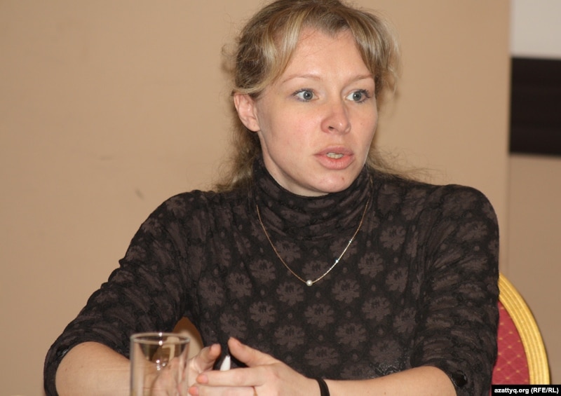 Олеся Халабузарь, социолог, участник круглого стола на тему "Роль СМИ и НПО в освещении и соблюдений прав избирателей в зонах вне общественного контроля". Алматы, 16 марта 2011 года.