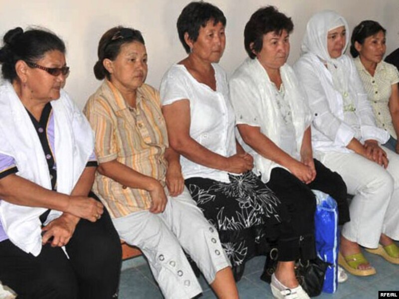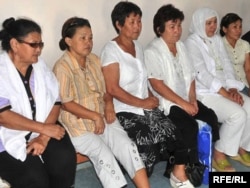 Женщины, чьих сыновей судят по уголовному обвинению, пикетируют здание областного суда. Атырау, 16 июня 2010 года.