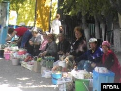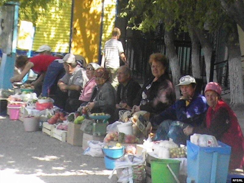 Пенсионеры торгуют на рынке. Актобе, сентябрь 2009 года.