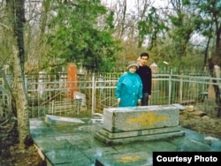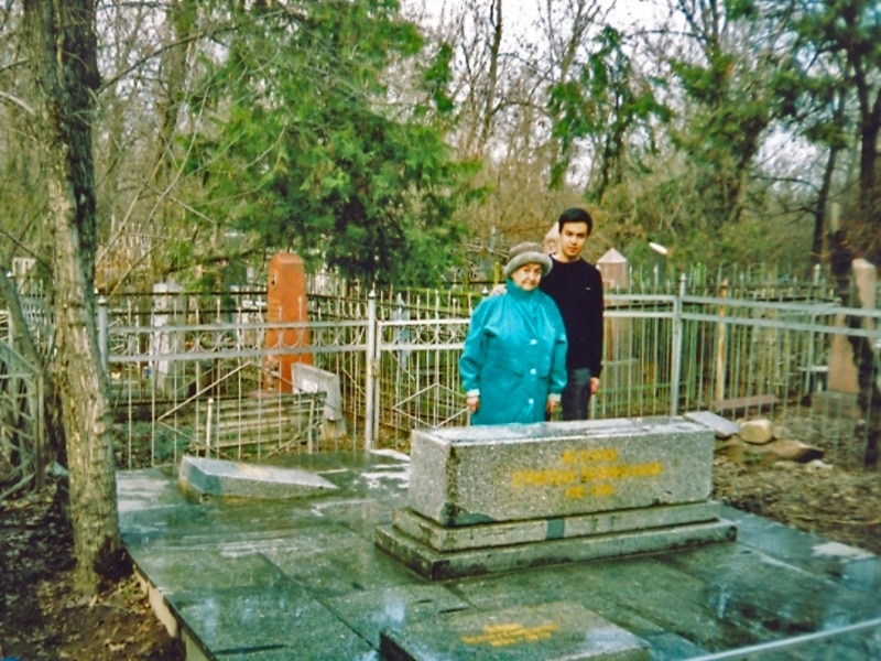 На кладбище в Алматы, где похоронен казахский ученый Ермухан Бекмаханов. Супруга Халима и внук Ануар.