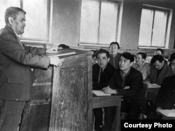 Казахский ученый Ермухан Бекмаханов в издательстве «Мектеп». Идет обсуждение школьного учебника по истории Казахстан. Алматы, 1959 год.