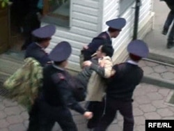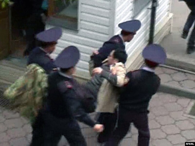 Арест оппозиционного активиста Ермека Нарымбаева на территории офиса партии "Алга". Алматы, 1 мая 2010 года.