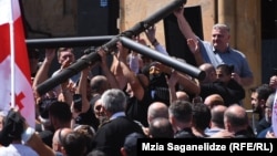 Гигантский металлический крест, прикрученный к ступеням у входа в здание парламента в Тбилиси, стоит там уже больше недели после сопровождавшихся насилием гомофобных акций.