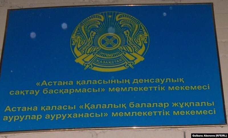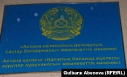 Табличка над входной дверью в главный корпус детской инфекционной больницы. Астана, 30 января 2011 года.