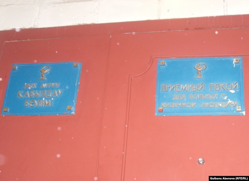 Входная дверь в приемный покой для больных с кишечной инфекцией детской инфекционной больницы. Астана, 30 января 2011 года.