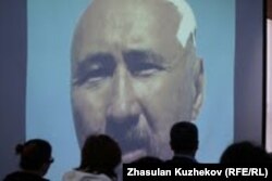 Кадр с изображением поэта Арона Атабека из фильма о событиях в поселке Шанырак был показан на общественных слушаниях по проблемам казахских дольщиков. Астана, 11 сентября 2010 года.