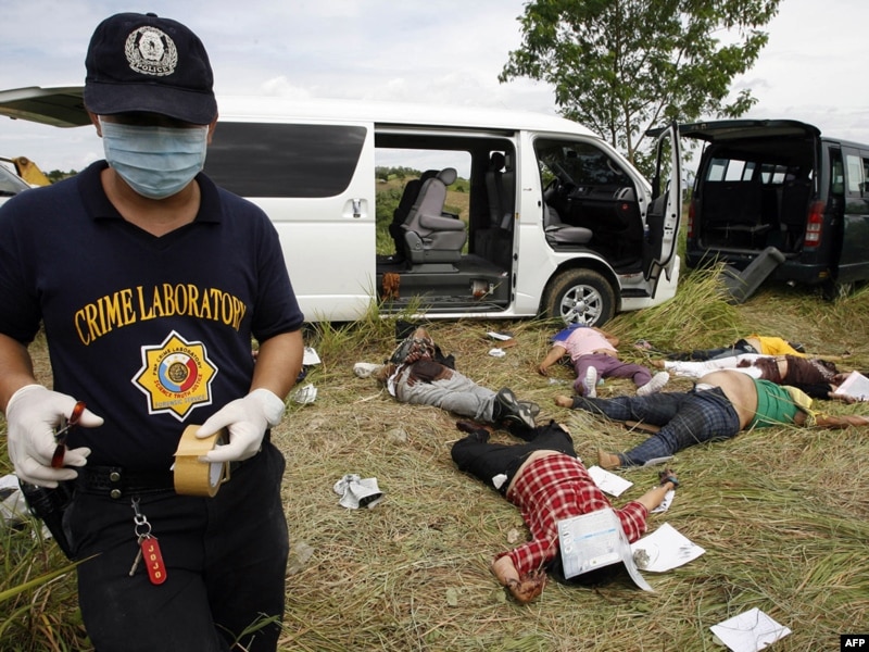 Как считают авторы доклада, один из самых ужасных случаев произошел 23 ноября 2009 года, когда 32 журналиста и сотрудника СМИ