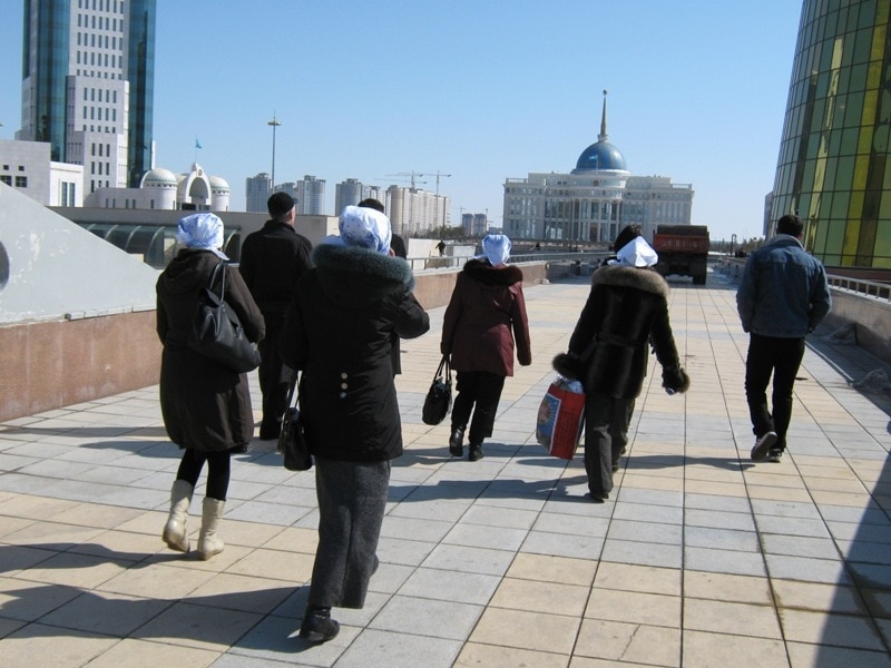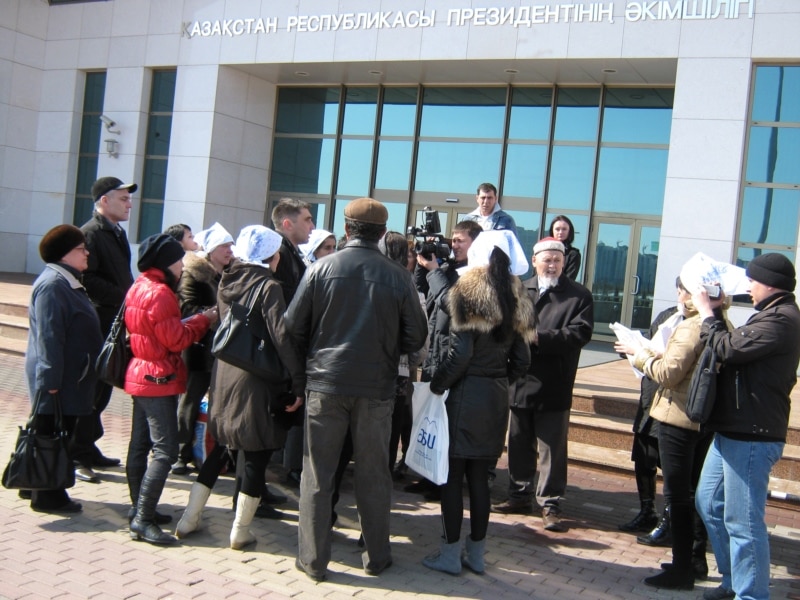 После общения с представителем комитета уголовно-исполнительной системы Ескали Саламатовым и депутатом парламента Ираком Елекеевым родственники осужденных, во главе с правозащитником Вадимом Курамшиным, отправились в администрацию президента. Некоторые из женщин надели на головы белые платки. Как они сказали, в знак того, что их близкие находятся в безвыходной ситуации.