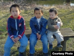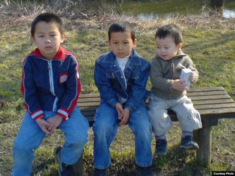 Дети казахского беженца Динмухамеда Ешимова - Абдулла, Муса и Омар в парке. Любляна, апрель 2009 года.