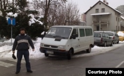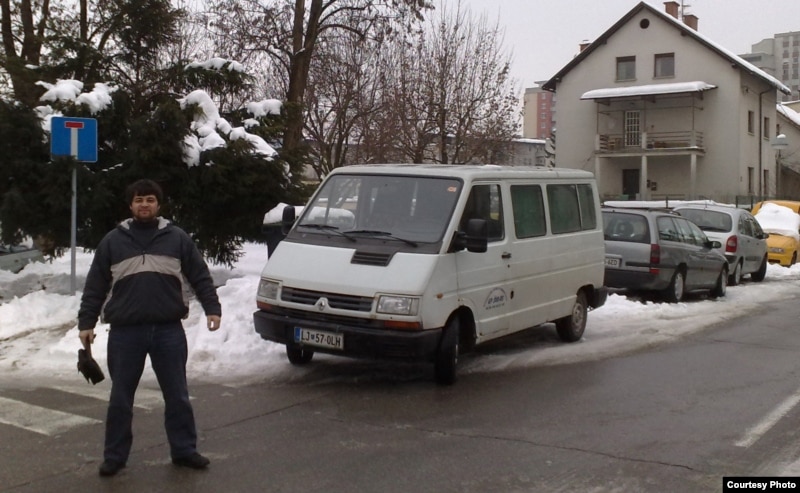 Казахский беженец из Жанаозена Асылбек Джумагазиев во дворе дома, где он живет. Любляна, февраль 2010 года.