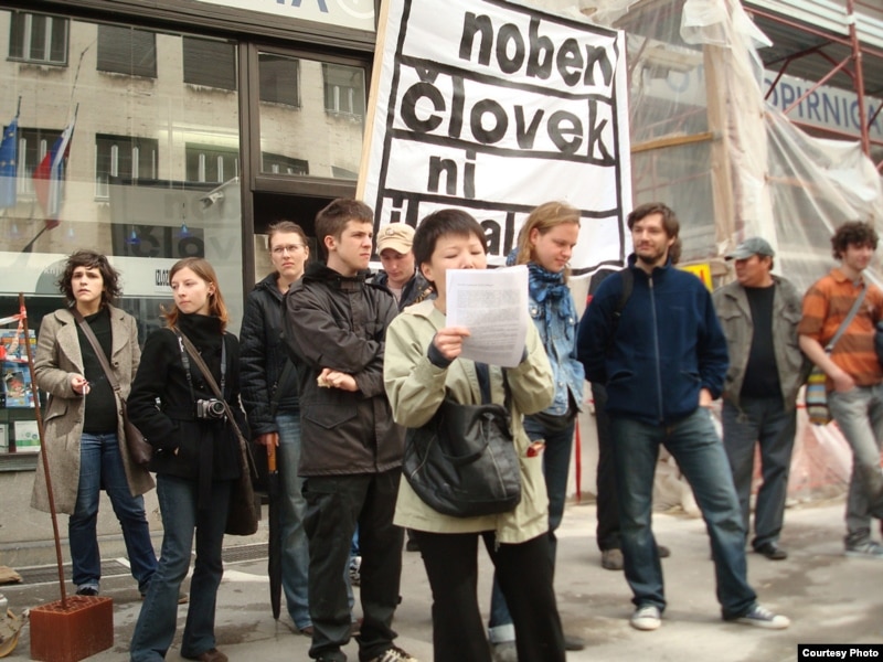 Акция протеста активистов словенского движения "Мир для каждого" и социального центра "Рог". Автор фото - Барбара Безнес.