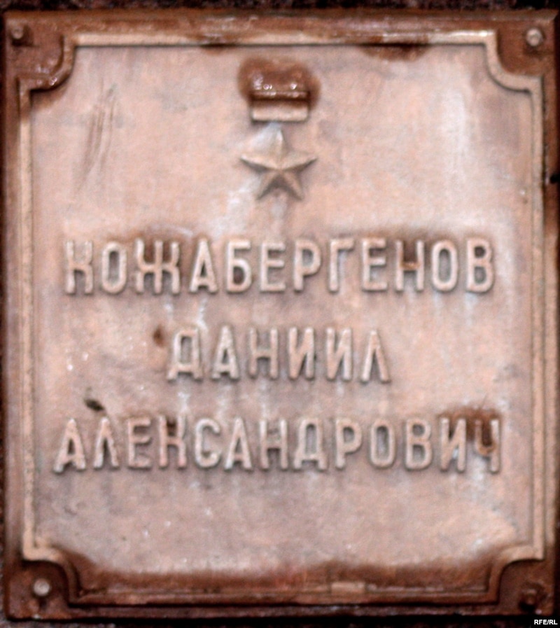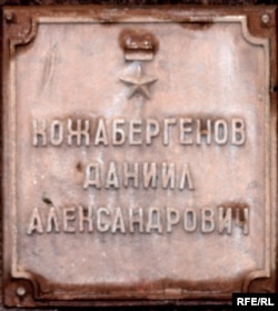 Памятная плита в честь одного из 28 гвардейцев-панфиловцев – Даниила Кожабергенова. Алматы, 23 февраля 2010 года.