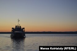 Машины на пароме, циркулирующем по Бухтарминскому водохранилищу, 31 августа 2020 года. Photo: Manas Kairtaiuly (RFE/RL)