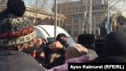 Около полудня 27 февраля полицейские разогнали собравшихся у здания «Нур Отана», задержав десятки людей. В задержаниях участвовали бойцы спецподразделения полиции.