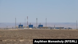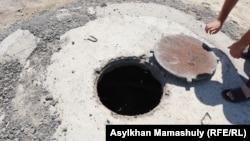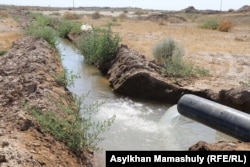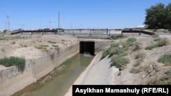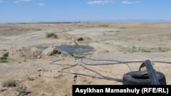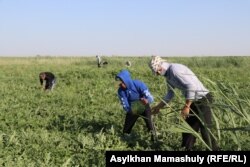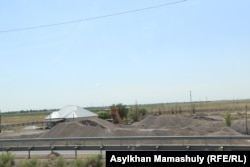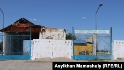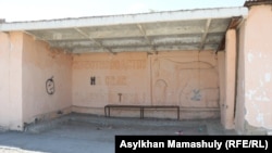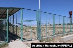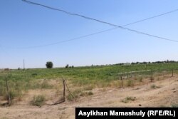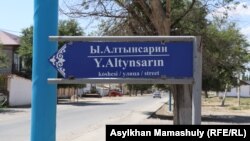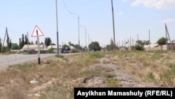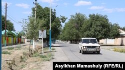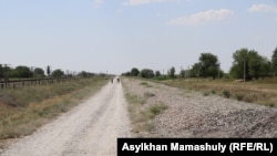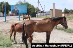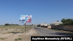 Велосипедист едет мимо баннера с изображением бывшего президента Казахстана Нурсултана Назарбаева. Село Шорнак, Сауранский район, Туркестанская область, 30 июня 2021 года Photo: Asylkhan Mamashuly (RFE/RL)