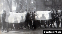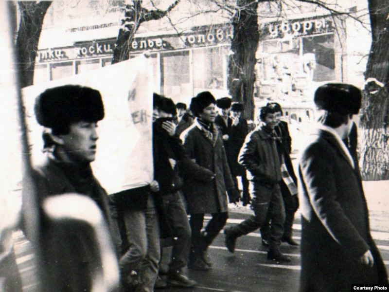 Демонстрация казахской молодежи в Алматы в декабре 1986 года. Фото из Центрального государственного архива Алматы.