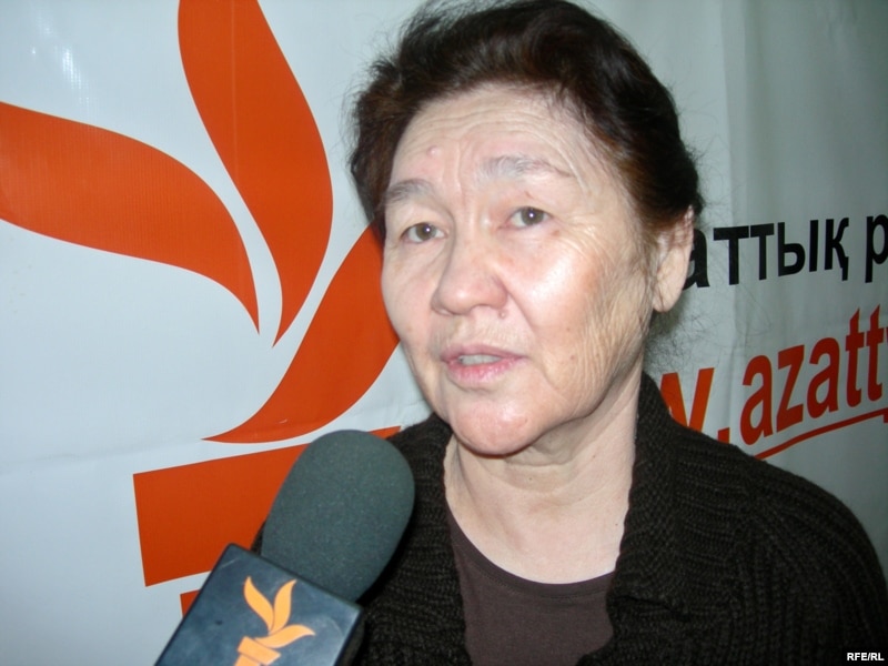 Тохтар Рахметова – вдова репрессированного после Декабрьских событий диссидента Аркена Уака, в бюро радио Азаттык. Алматы, 13 декабря 2008 года.