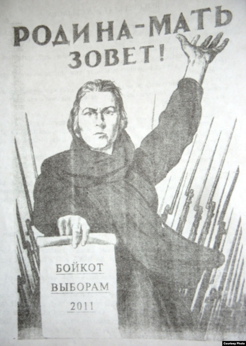 Неизвестно кем распространенные листовки используют мотив знаменитого советского плаката «Родина-Мать зовет!», под которым осуществлялась мобилизация советских граждан во время Второй Мировой войны.Жители некоторых домов в Семее находили эти листовки у себя в почтовых ящиках. Живущие в Семее некоторые ветераны Второй Мировой войны обратились 15 марта в акимат города и в городскую прокуратуру с требованием «принять меры» в отношении изготовителей и распространителей листовок. Ветераны свидетельствуют, что данные листовки с призывом бойкотировать досрочные президентские выборы и не идти голосовать распространяются в Семее вот уже несколько дней.