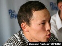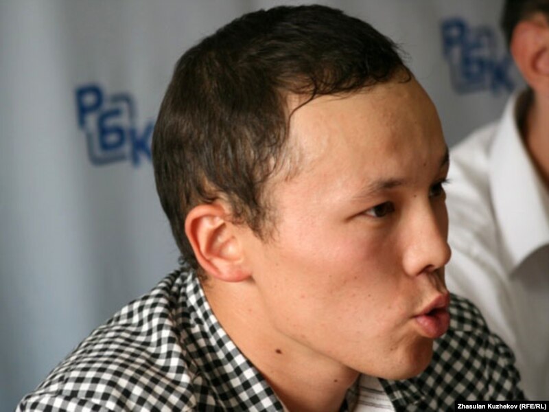 Активист общественного объединения "Шанырак" Махамбет Абжан на пресс-конференции. Астана, 13 августа 2010 года.