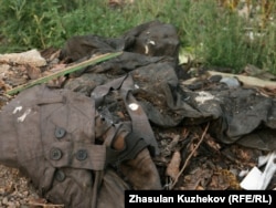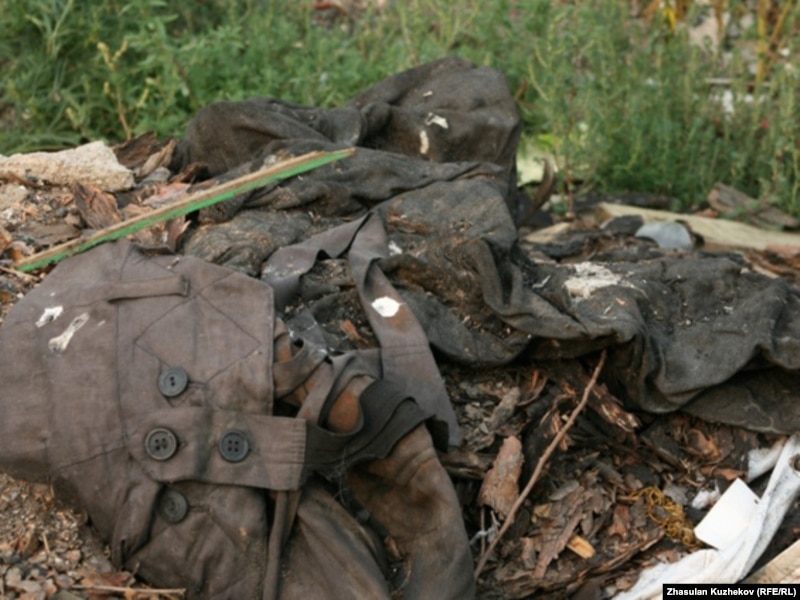 Выброшенная на свалку одежда осужденных. Поселок Гранитный, Акмолинская область, 12 августа 2010 года.