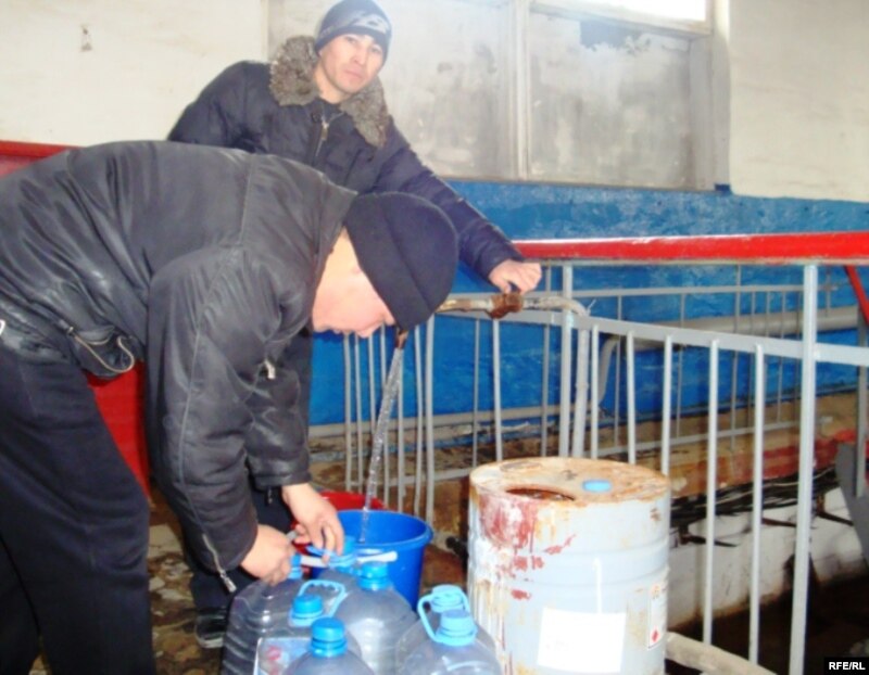 Жители села Макат Атырауской области набирают питьевую воду. Макат, 21 февраля 2010 года.