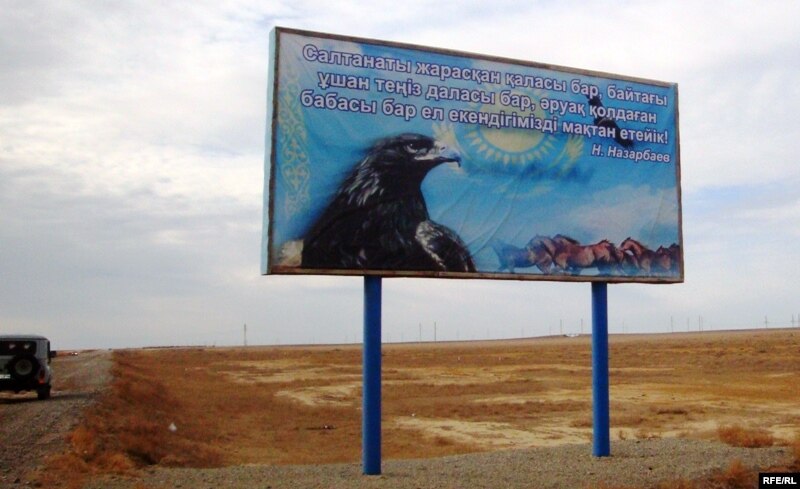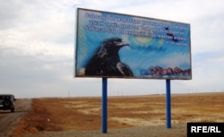 Билборд перед въездом на территорию Макатского района. Атырауская область, 21 февраля 2010 года.