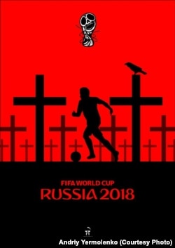 Украинский художник Андрей Ермоленко нарисовал серию плакатов, приуроченных к чемпионату мира по футболу в России. Графическим оформлением они напоминают официальную символику чемпионата, но на этом сходство заканчивается: каждый из плакатов посвящен событию, которое Ермоленко считает достаточным основанием для бойкота соревнований. В их числе – аннексия Крыма, поддержка сепаратистов на востоке Украины, сбитие Boeing'а над Донецком, бомбардировки Алеппо, судьба украинских политзаключенных в России, отравление бывшего агента ГРУ Сергея Скрипаля и его дочери в Великобритании. Самый популярный рисунок художника, официальный логотип чемпионата, стилизованный под череп, даже показали в прямом эфире на телеканале «Россия 1».