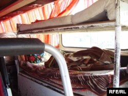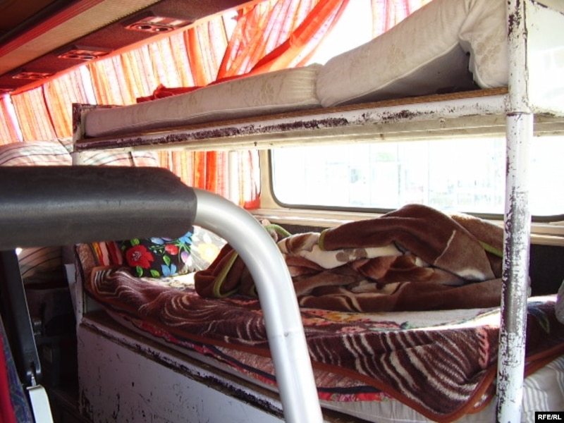 Внутри автобуса, перевозящего мигрантов из Таджикистана в Казахстан. Апрель 2008 года.
