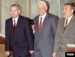Ислам Каримов, Борис Ельцин, Нурсултан Назарбаев на встрече глав государств СНГ в Ташкенте, 1992 год.