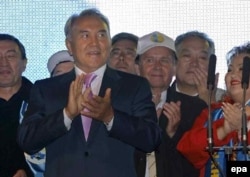 Президент Нурсултан Назарбаев принимает поздравления в офисе партии «Нур Отан» после парламентских выборов. Астана, 18 авгута 2007 года.