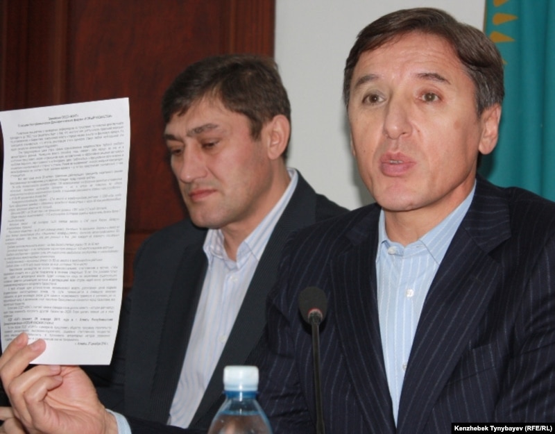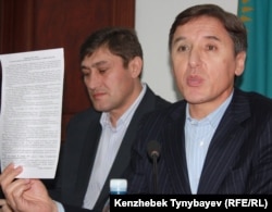 Болат Абилов, сопредседатель ОСДП «Азат» (справа), на пресс-конференции. Алматы, 27 декабря 2010 года.