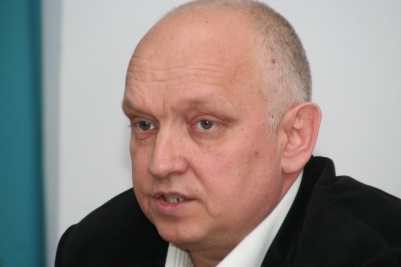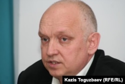Лидер оппозиционной незарегистрированной партии "Алга" Владимир Козлов выступает на пресс-конференции. Алматы, 6 апреля 2011 года.