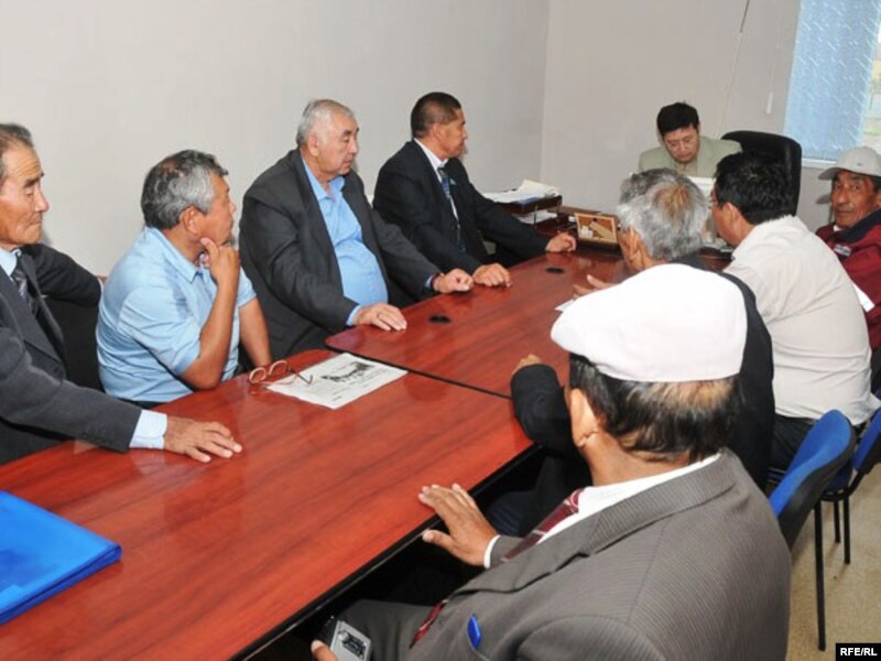 Делегация работников «Эмбамунайгаза» принесла корреспонденту радио Азаттык своё обращение. Атырау, 26 мая 2010 года.