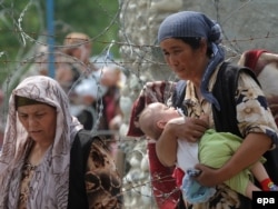 Узбекские беженцы возвращаются в Кыргызстан через границу с Узбекистаном близ Оша. 17 июня 2010 года.