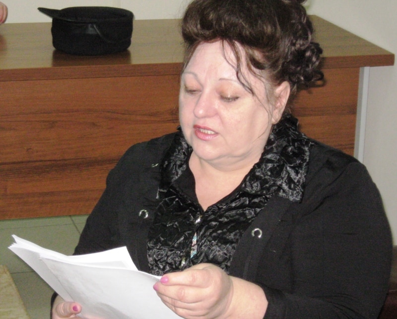 Наталья Томилова, председатель общественного объединения "Шахтерская семья", зачитывает обращение к кандидату в президенты Казахстана Нурсултану Назарбаеву. Астана, 28 марта 2011 года.