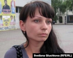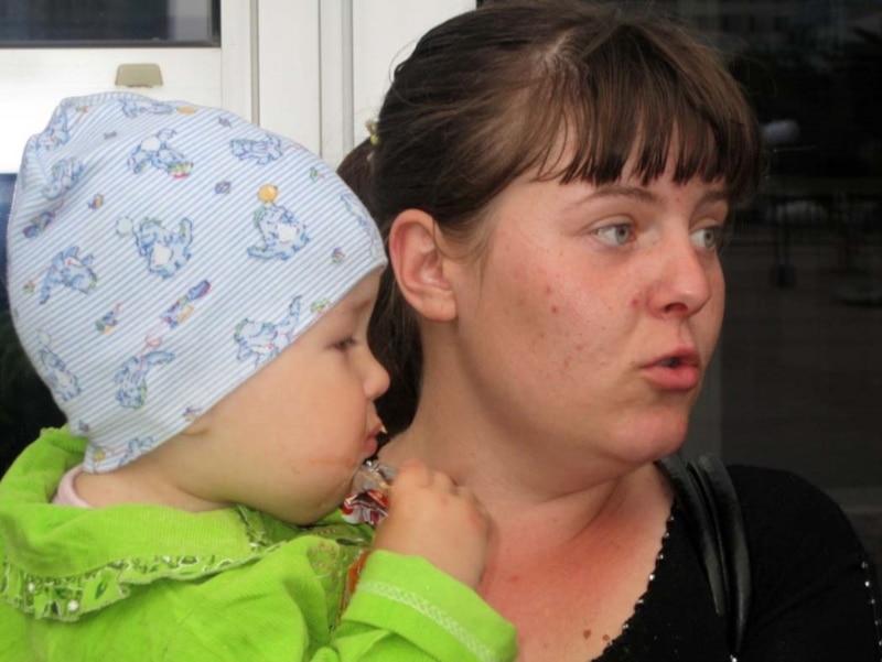 Маргарита Вирфель, супруга заключенного колонии в поселке Гранитный, с ребенком. Астана, 25 июня 2011 года.