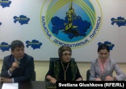 Депутат парламента Айгуль Соловьева (в центре) на встрече с родственниками заключенных. Астана, 31 мая 2011 года.