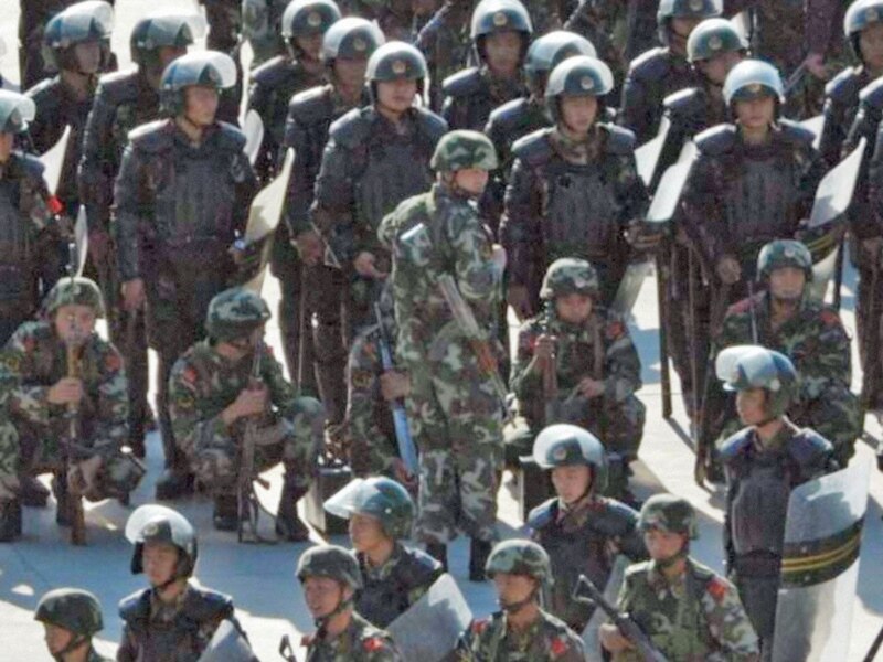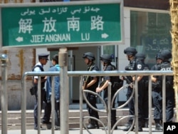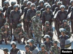Сотрудники специального подразделения полиции Китая на месте столкновения в городе Кашгаре. 1 августа 2011 года.