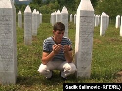 Изудин Алич, житель деревни Прохици, молится на кладбище жертвам резни в Сребренице. Ему было 12 лет, когда генерал Ратко Младич лично спрашивал его имя и возраст в момент, когда были обнаружены тысячи укрывавшихся беженцев. Сребреница, 3 июня 2011 года.