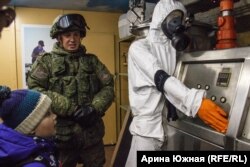 В вагоне, где демонстрируется оружие, пистолеты и винтовки, экспозицию осматривает пятилетний мальчик и его мама. Наталья просит их с сыном не фотографировать. Но поговорить соглашается.