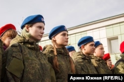 Член движения «Юнармия», 16-летняя Татьяна, слушала спикеров на митинге очень внимательно.