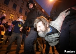 А 8 октября решение принимали уже местные власти, и это было подавление радикализации протеста, под которым понимается занятие городских пространств всякими постоянными пунктами активности, палатками, лагерями. В этом смысле настроение движения "Артподготовка", или так называемых "мальцевских" (по фамилии их лидера Вячеслава Мальцева, уехавшего за границу и объявленного в федеральный розыск. – Радио Свобода), которые считают, что близится час Х – точка невозврата или начала революции, совпала с настроениями нескольких протестных групп без общего центра, которые заявили 8-го числа, что они продолжат на площадях протест, начатый на улицах Петербурга 7 октября.
