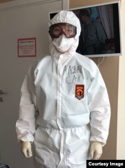 Алдар прошел медобследование, затем инструктаж по работе. Его научили правильно надевать и снимать "скафандр" - так он называет свой защитный костюм.