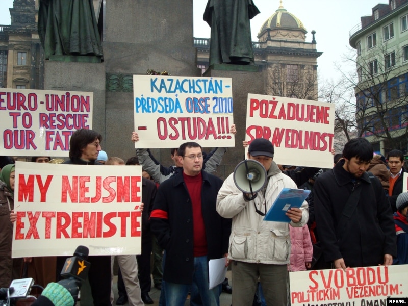 Казахские беженцы вышли на митинг с лозунгами на чешском и английском языках. Двухчасовая демонстрация протеста была санкционирована пражскими властями. Митингующие прочитали свои требования на английском, чешском, русском и казахском языках.